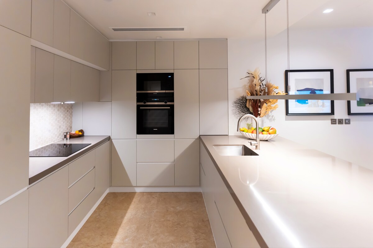 Doživite luksuz s 5 zvjezdica u tornjevima Forte (okrug Opera). Naš dizajnerski trosobni stan na visokom spratu za 9 osoba. Uživajte u namjenskoj PS5 sobi za igre i namještenom balkonu sa spektakularnim pogledom na operu i horizont Dubaija. Potpuno opremljena kuhinja, hotelska posteljina, dizajnerski raspored i namještaj. 5 minuta hoda do tržnog centra Dubai, Burdž Kalife i fontane Dubai. Pristupite vrhunskim sadržajima kompanije Forte, uključujući bioskop. Savršeno za grupe i porodice! Rezervišite svoju elitnu adresu u Dubaiju!