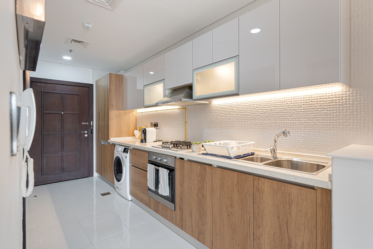 Naš prelijepi stan je savršeno mjesto za parove, prijatelje, kao i za poslovna putovanja. To je šarmantno i privatno utočište od svijeta. Udoban, potpuno opremljen stan sa svim sadržajima koji su vam potrebni i želite, upotpunjen ogromnim bazenom, 24-satnim obezbjeđenjem, teretanom i saunom i supermarketom u nastavku. Uživajte u luksuznom okruženju našeg doma u kojem cijenimo vašu privatnost i osiguravamo vam savršen boravak u Dubaiju.
