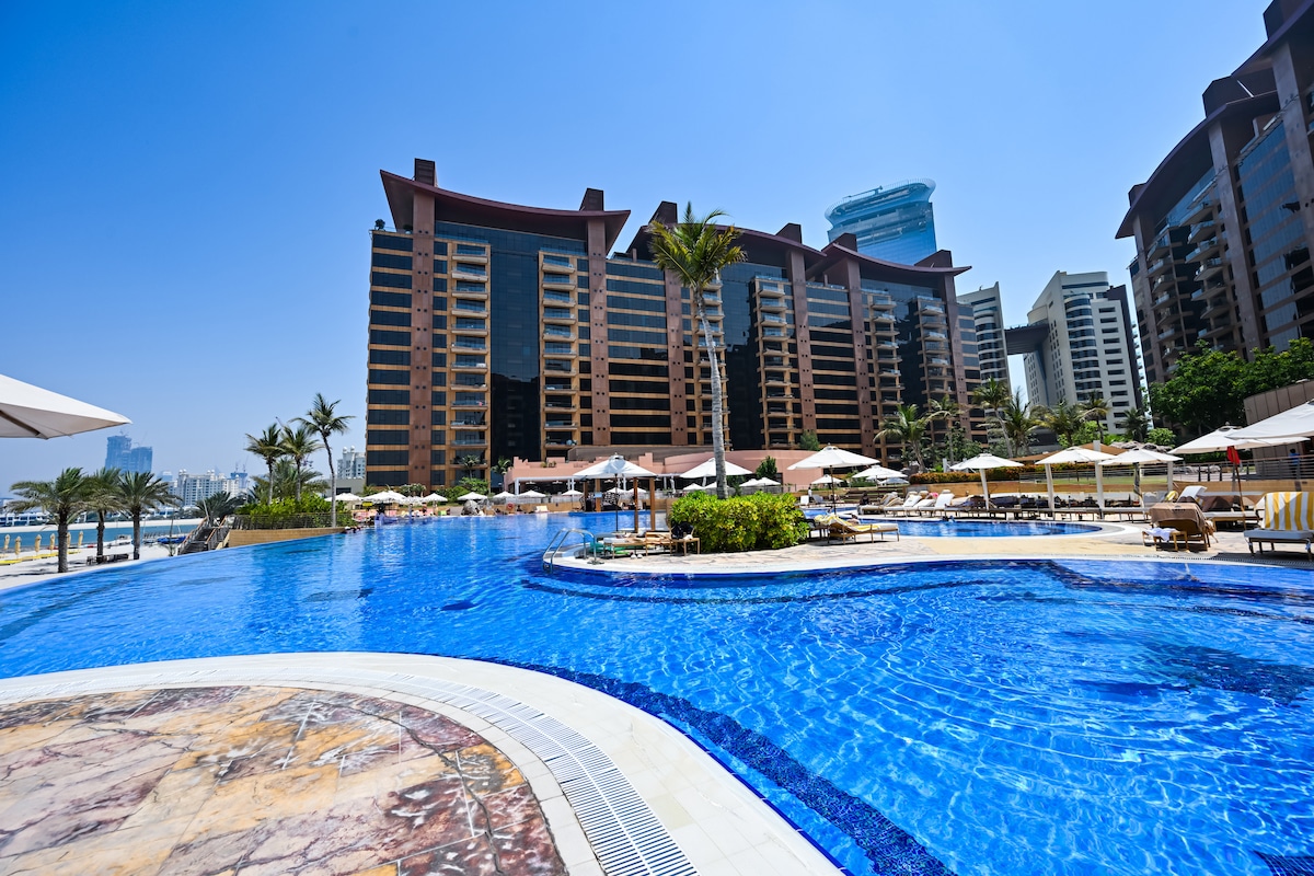 Uživajte u šarmu ostrva Bluewaters! Ukucajte se u Ain Dubaiju, uživajte u mirnoj auri The Wharf 's Wharf, gozbi poput plemstva u palati Caesars, pa čak i trljati ramena sa 60 revnih slavnih u Madame Tussauds. Elegantan jednosoban stan sa pogledom na more, pouzdan Wi-Fi i parking koji je jednostavniji od čarobne vožnje tepihom. Osvežite se u bazen, iskoristite svoje težnje u fitnes centru ili lutajte kroz park na trgu kao urbani istraživač.