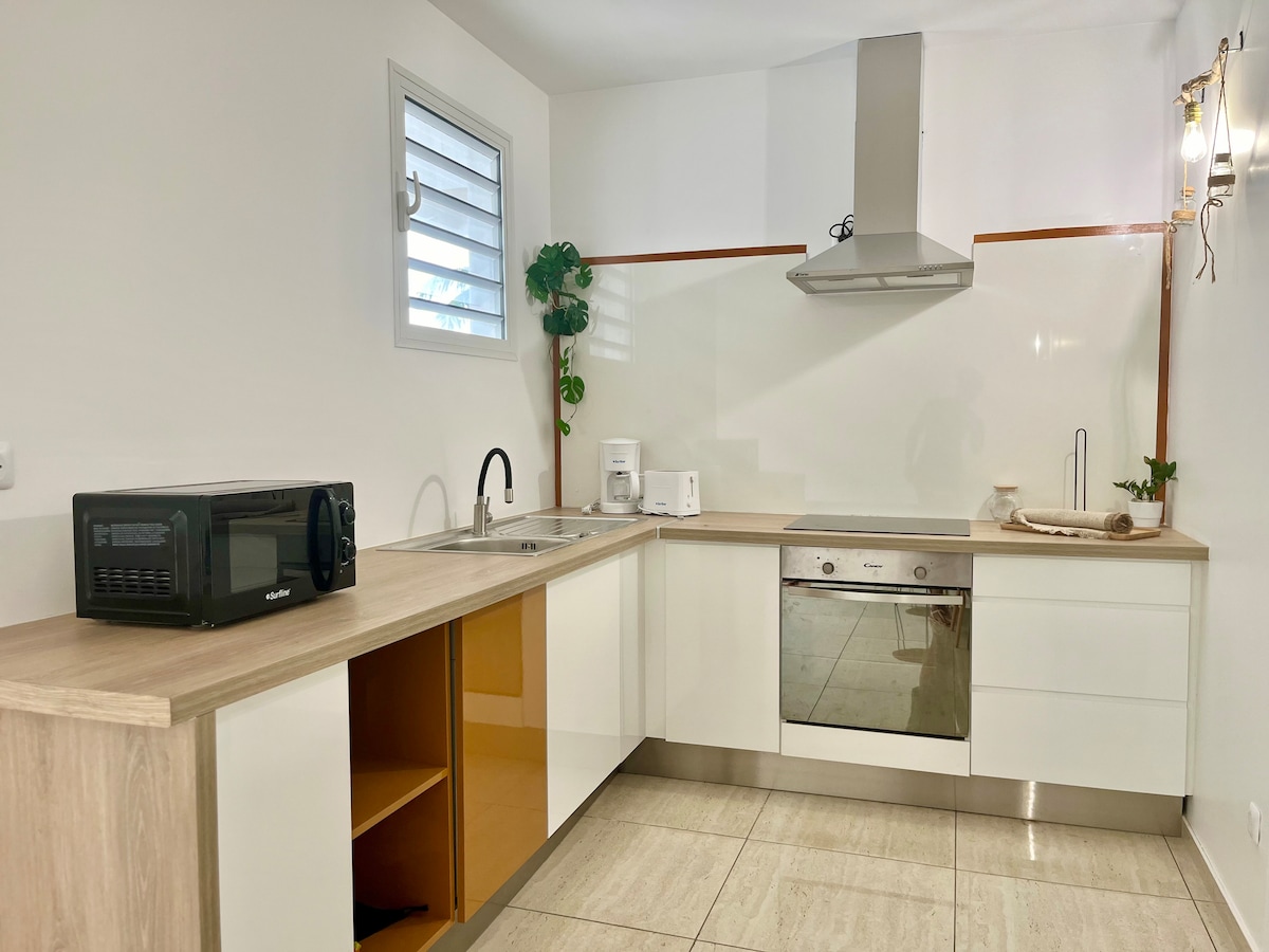 Šarmantan, udoban smještaj, idealno smješten na raskrsnici plaža na jugu, sjeveru i Fort-de-Franceu, 5 minuta od aerodroma. Naći ćete: udoban apartman za 2 osobe sa kupatilom i povezanim TV-om u spavaćoj sobi, prostranu dnevnu sobu sa povezanim TV-om, opremljenu kuhinju (mašina za pranje sudova), terasu sa baštom i rezervisano parking mjesto. Mirno i dobro raspoređeno, smještaj prima male životinje (na otvorenom, na zahtjev).