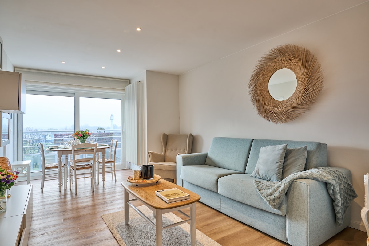 Dobro došli u Zi i Zen, svoju oazu mira na belgijskoj obali! Naš elegantni Airbnb sa bočnim pogledom na more i prednjim pogledom na tihi Kinkhorenplein udaljen je samo 60 metara od morskog nasipa i 100 metara od dina. Bilo da dolazite da udahnete svjež vazduh i opustite se ili tražite inspirativno mjesto za rad - Zi i Zen su tu za vas. Uz prijatno i mirno radno okruženje, naš objekat je savršen za profesionalce koji žele da rade od kuće.