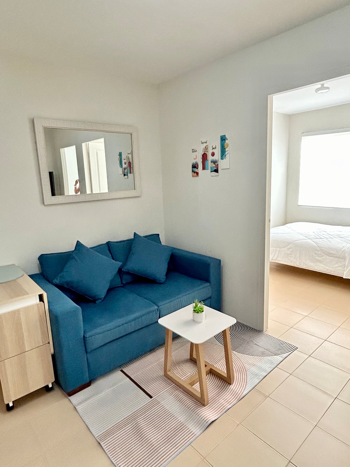 Marina Blu presents a comfortable and stylish condominium unit in Building A at Marina Spatial, featuring 2 bedrooms and one bathroom. Conveniently located near famous bars and restaurants such as Hayahay, Lantaw, Cafe Racer, TIKI Bar, and HYDE! Enjoy the convenience of private parking and access to the gym, pool, and other amenities upon request. Plus, stay connected with WiFi access and indulge in entertainment with Netflix!