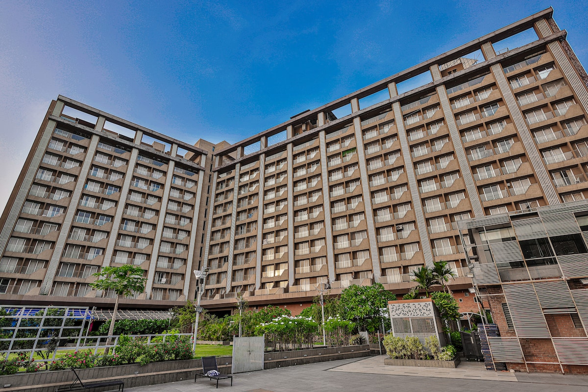 Radi se o samostalnoj prijavi u studio apartman s besplatnim bežičnim internetom koji je pogodan za nevjenčane parove koji se bave korporacijama i porodicom. Ne dozvoljavamo različite religije. Ima dva bračna kreveta, jedan kauč na razvlačenje i povezana kupatila sa balkonom. Nalazi se u blizini međunarodnog aerodroma Surat, kao i obližnjih tržnih centara. U tom području su lako dostupni i objekti za putovanja kao što su Ola i uber. To je hotelski stan. Sadržaji se naplaćuju, kao što su bazen, stoni tenis,teretana, sto za bilijar.