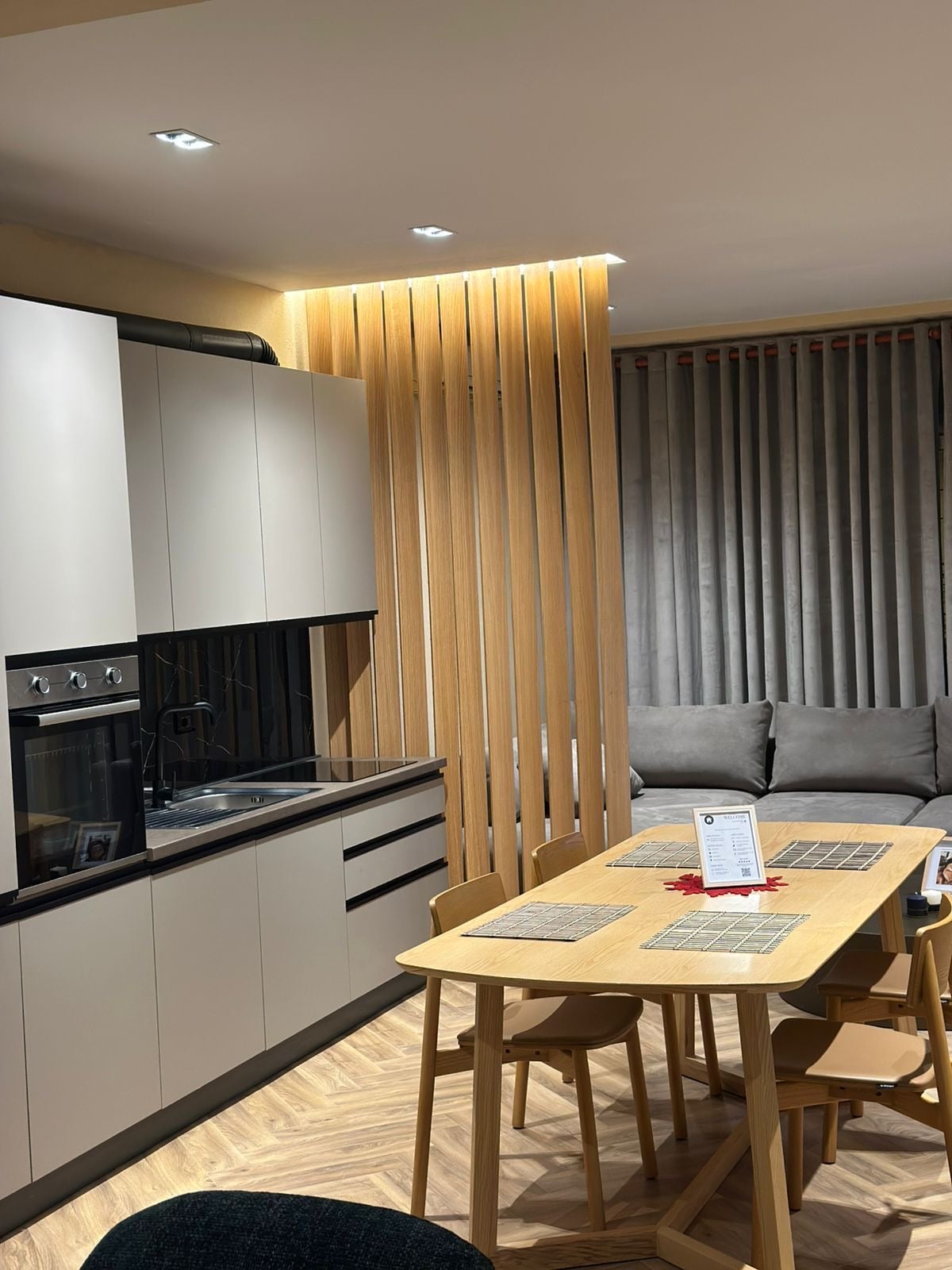 Elegantan stan u potkrovlju sa međuspratnom spavaćom sobom Moderno potkrovlje sa međuspratnom spavaćom sobom s pogledom na dnevni boravak. Smješten na prvom spratu, nudi prirodno svjetlo, potpuno opremljenu kuhinju i prijatnu atmosferu. Idealno za parove ili putnike koji putuju sami. Domaćin: Živimo u istoj zgradi, jedan sprat više. Lokacija: Samo 10 minuta hoda od Skenderbegovog trga, u blizini centra grada.