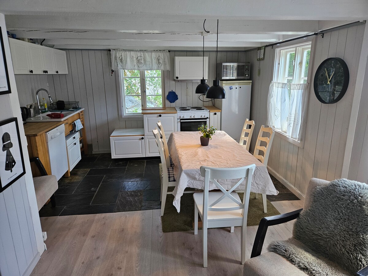 Stan sa 2 spavaće sobe i 7 kreveta, dnevnim boravkom sa trpezarijom i kuhinjom. 1 kupatilo + vešernica. Dodatna soba s kaučem, igrama i igračkama. Spoljašnji prostor sa baštenskim namještajem, roštiljem i travnjakom. Mogućnost punjenja električnog automobila (prema dogovoru) Andøya je odlično mjesto za boravak u blizini, između ostalog, mora, malih plaža, pješačkih staza, fudbalskih terena, terena za odbojku na pijesku itd. Otprilike 7,5 km od centra Kristijansanda i oko 20 km od Zoološkog vrta. Leos Lekeland i Skyland Trampoline Park udaljeni su oko 4 km. Posteljina mora biti ponesena ili dogovorena.