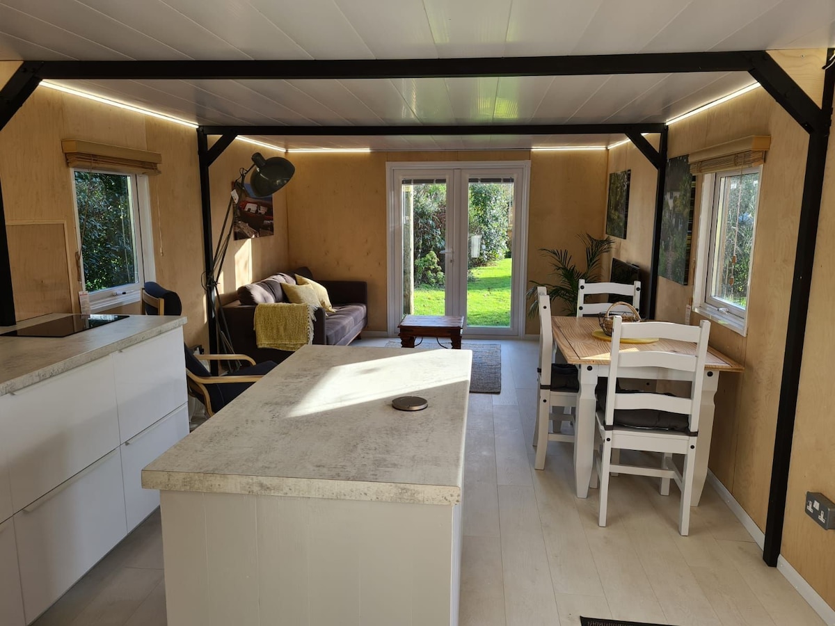 Take it easy at this unique and tranquil getaway in the heart of Bradninch. Self contained detached building with private parking, large open planned space with kitchen, bathroom and small outdoor area. 7 minutes from Junction 28 M5 junction and 20 minutes from Exeter. Bradninch is a delightful Duchy Town in Mid Devon with easy access to the countryside and Exeter City centre. The town boasts two local pubs and the nearby National Trust attraction of Killerton House and Gardens.
