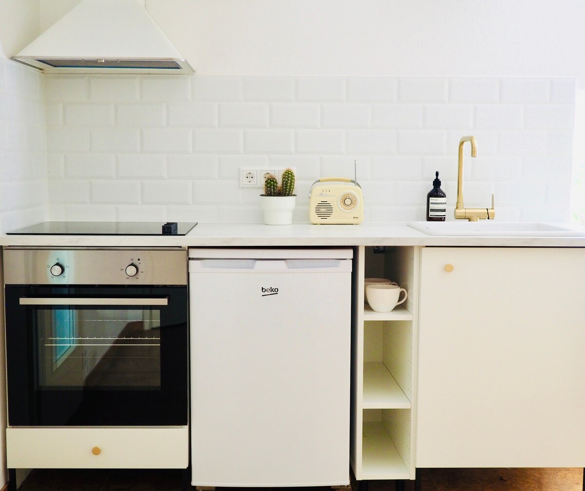 Uživajte u životu u ovom mirnom i centralnom smeštaju sa mnogo prilika da uradite nešto u vezi sa poslom. Stan (55 m2) se nalazi u prizemlju (kupatilo, kuhinja i konzervatorijum) i na prvom spratu (spavaća soba i dnevni boravak/spavaća soba) sa privatnim pristupom. Tlocrt vidi tlocrt. Stan ima veliku, mirnu baštu koja se naravno može deliti. Parking se nalazi na imanju ispred garaže. Vrlo centralno smješten, pešačka zona, restorani, prodavnice u neposrednoj blizini.