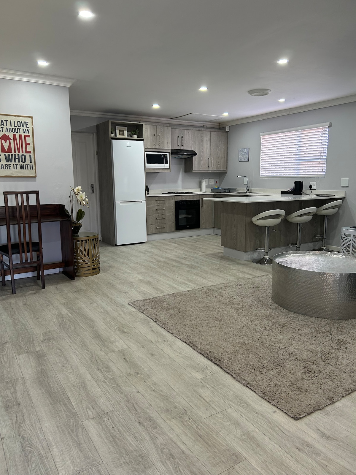 Kick back and relax in this calm, stylish space. Loadshedding free and unlimited WiFi, this house is a suburban sanctuary. Located 2km away from Bonza bay beach. The gym, Spargs spar and OK are a walk away.