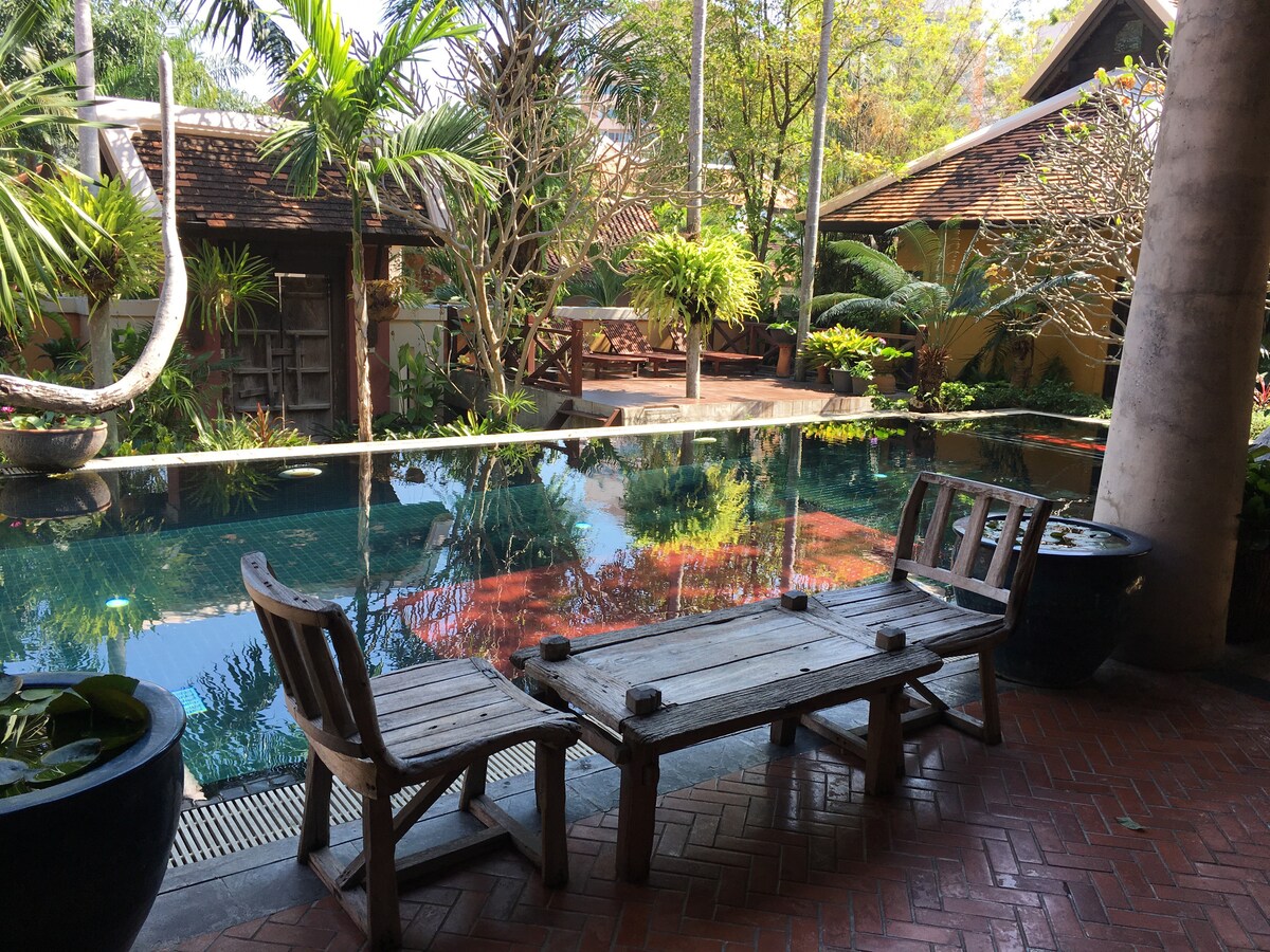 Opustite se u ovom mirnom i elegantnom prostoru. Prelijepo mjesto za bijeg od gužve! Nalazili smo se samo 7 km do plaže. 10 minuta do vrta Noognuch, Kao Či Čan, 12 minuta do aerodroma Utapao, 20 minuta do Pataje, 10 minuta do vodenog parka.