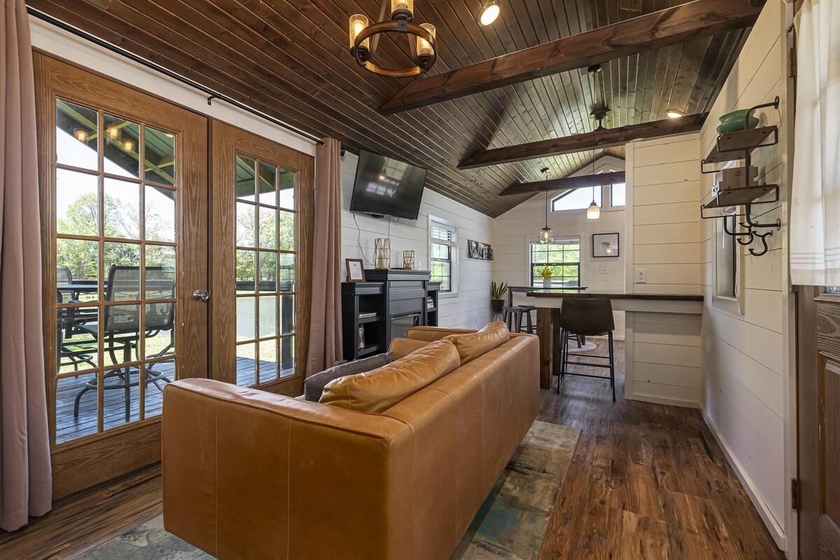 Koliba Teal Door – Lake of Egypt Tiny Home Getaway, Ilinois Otkrijte svetlu i modernu mikrovikendicu od 560 kvadratnih stopa sa pogledom na mirno jezerce od 1,5 hektara. Brdska kuća Teal Door nudi savršenu ravnotežu udobnosti i jednostavnosti – pogodna je za kućne ljubimce, ispunjena prirodnim svetlom i udaljena nekoliko minuta od jezera Egipat, lokalnih vinarija i pešačkih staza u Nacionalnoj šumi Šoni. Gosti vole da se opuste na tremu, pecaju u ribnjaku ili se opuste nakon celodnevne avanture u južnom Ilinoisu.