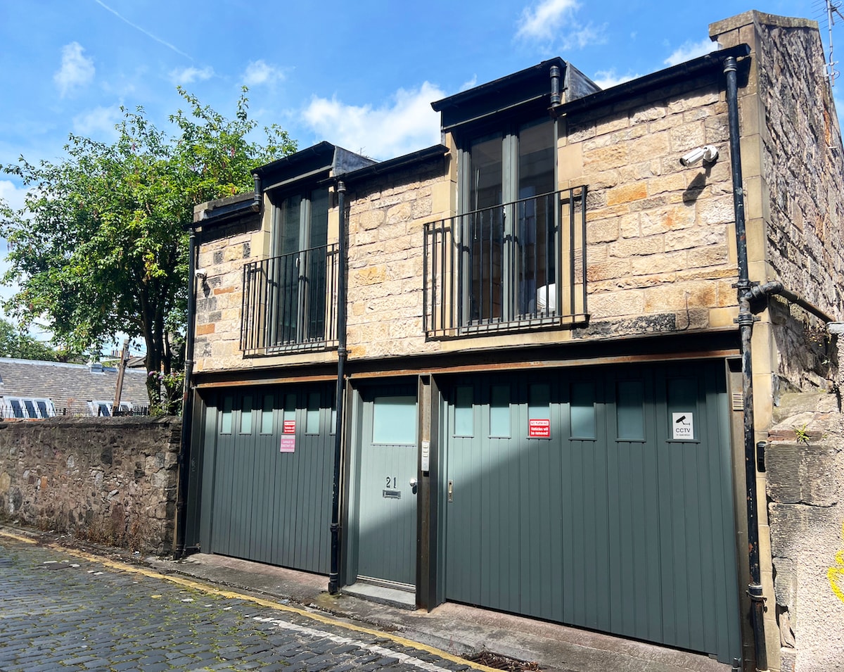 This unique mews house is in the heart of Edinburgh on a quiet lane within the renowned New Town. This wee house is the ideal base for exploring the capital city. The place is split over three floors connected by a spiral staircase with private patio area that enjoys afternoon sun. The basement level provides a spacious lounge/dining space with a door which leads out to a small rear private patio area. On the upper bedroom floor there is a king size bed with doors opening to a Juliet balcony.
