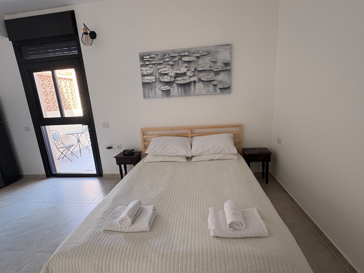 Uživajte u Eilatu, mirnom kraju nedaleko od plaže i grada, oko 10 minuta hoda ili 2 minuta vožnje. Pogodno je za par, par + dete ili 3 odrasle osobe. Jedinica ima bračni krevet i krevet za jednu osobu – po potrebi, opremljenu čajnu kuhinju, TV i Wi-Fi. Takođe ima privatno dvorište sa prostorom za sedenje. Stan je na nekoliko minuta hoda od prodavnice u susedstvu i autobuske stanice.
