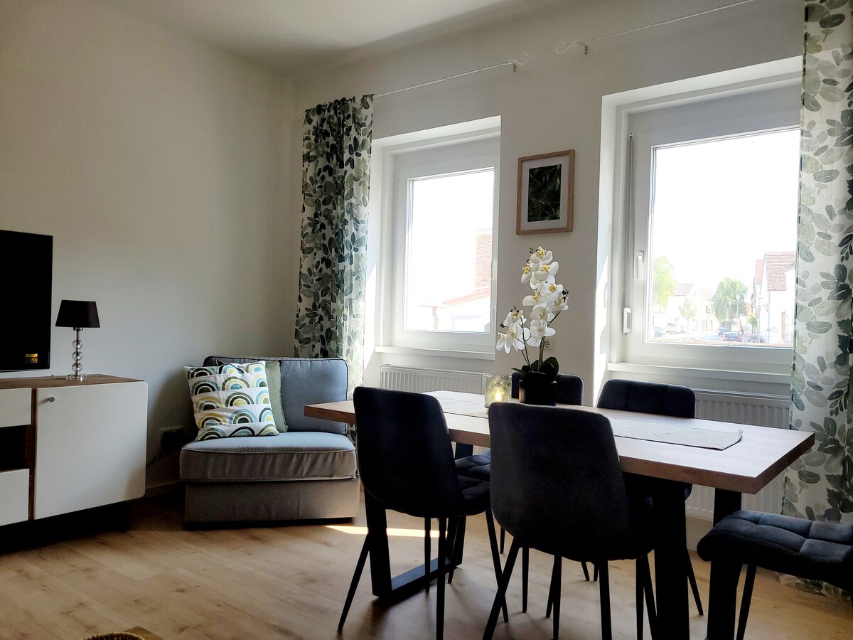Grünruhelage, gemütliche und geräumige Wohnung für 2 Personen. Entschleunigen und Entspannen: Die Blicke in unsere Weingärten und den Garten machen die Seele frei. Genießen Sie die Natur - vielleicht mit einem guten Glas Wein aus unserem Weingut.