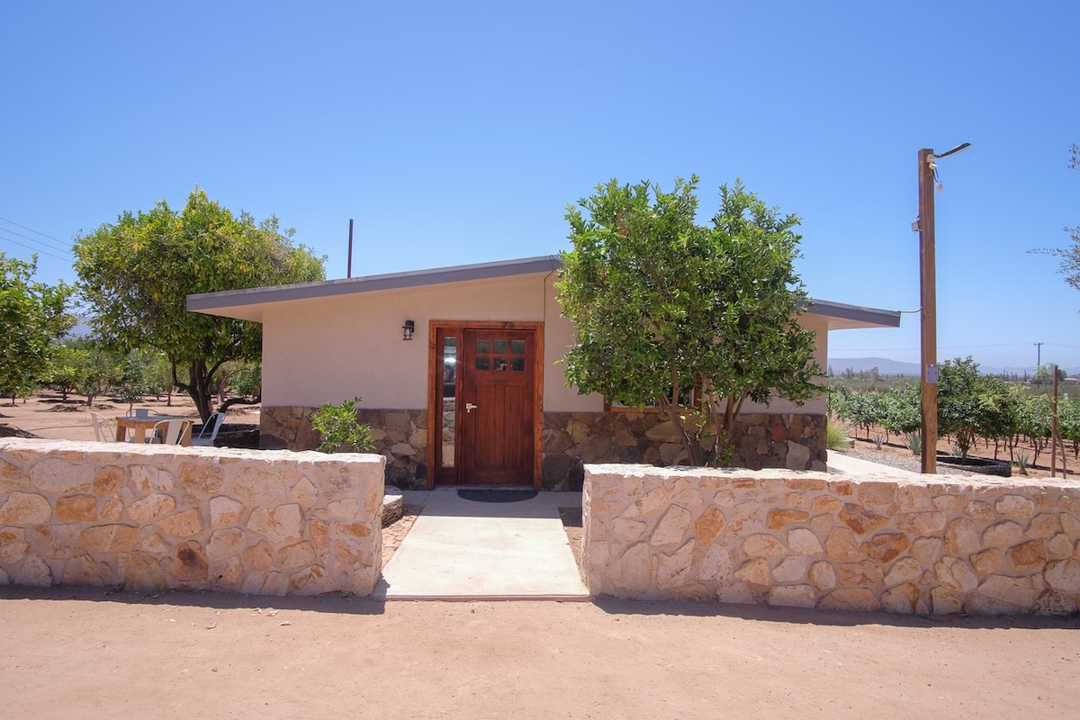 Soba je dizajnirana za prijatan odmor i uživanje u izlascima sunca, zalascima sunca, nebu, zvijezdama i mjesecu sa vaše terase. Pogodno za dvije osobe, sa bračnim krevetom, klima-uređajem, ventilatorom, aparatom za kafu, toplom vodom i brzim satelitskim internetom. Zid perimetra za privatnost i bezbjednost. Kupatilo ima ogledalo, sapun, šampon, regenerator, peškir za ruke i fen za kosu. Uživajte u vinogradima i vinarijama u dolini Gvadalupe. Bezbjedno i blizu najpoznatijih mjesta u regionu.
