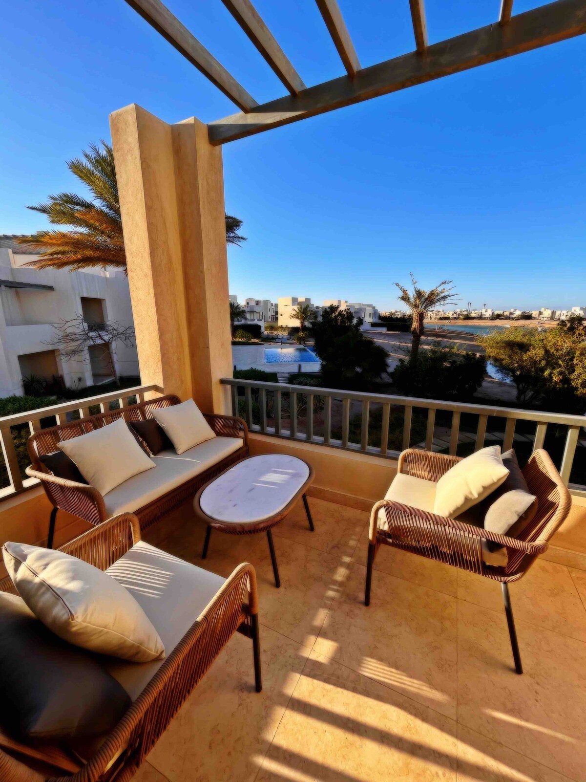 M7 POOL IS UNDER CONSTRUCTION UNTIL 15TH OF MARCH) Seaview apartment located in Mangroovy Residence - a tranquil area of El Gouna - ready to entertain you all year long with beach vibes under the sunbeams. Situated just 140 meters from the private beach with easy access to all surrounding hotspots and facilities. The amenities of this modern apartment include free access to the pool, beach, parking, and Wi-Fi.