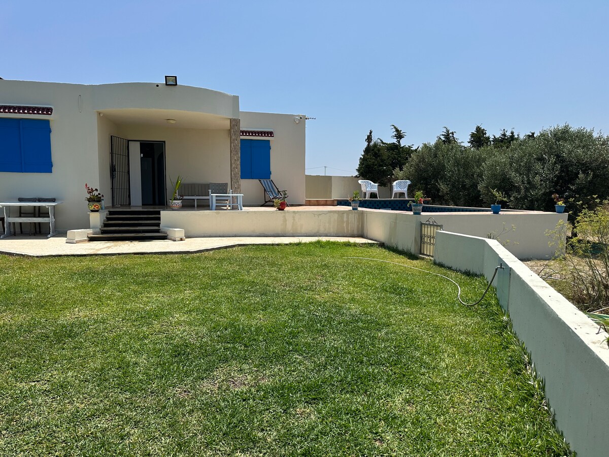 Villa ideally located in Dar Allouch for the perfect summer getaway Just a 5-minute walk to the beach. 15 minutes by car to the Punic ruins of Kerkouane. 20 minutes by car to El Haouaria, where you can explore the Punic caves, hike to the mountain summit, or rent a boat at the marina for a sea excursion to Mteris. 25 minutes by car to Kelibia to discover the vibrant town, visit Fort de Kélibia, and enjoy its lively food scene.