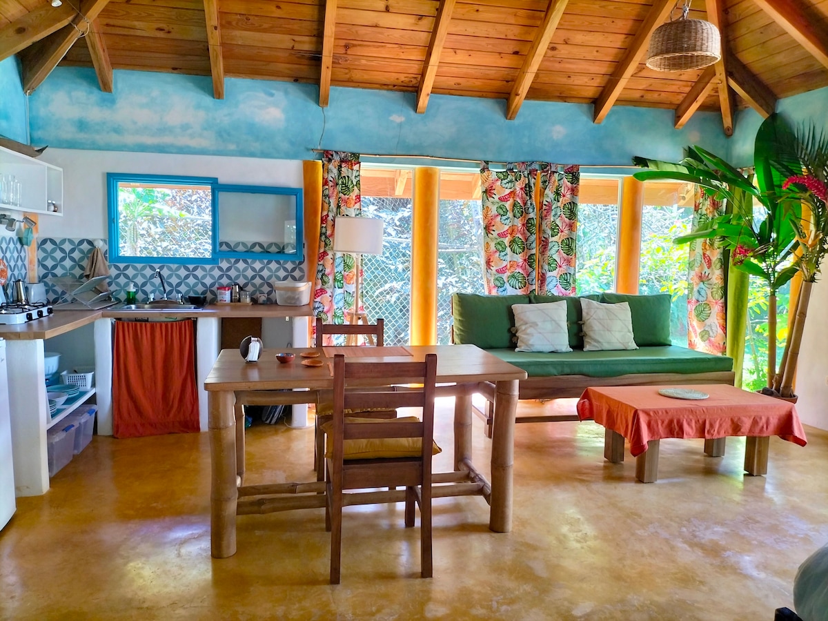 Otkrijte parče raja u našoj jedinstvenoj vili uz okean u Las Terenasu u Samani. Smještena iznad mirnog potoka koji protiče ispod, ova zapanjujuća drvena vila nudi skladan spoj prirode i udobnosti. Smještena do šest gostiju, vila ima 3 prostrane spavaće sobe sa 3 kupatila i dodatni WC radi lakšeg snalaženja. Uživajte u veličanstvenom pogledu na okean u cijeloj kući, opustite se uz zvuk potoka i uronite u tropski pejzaž!