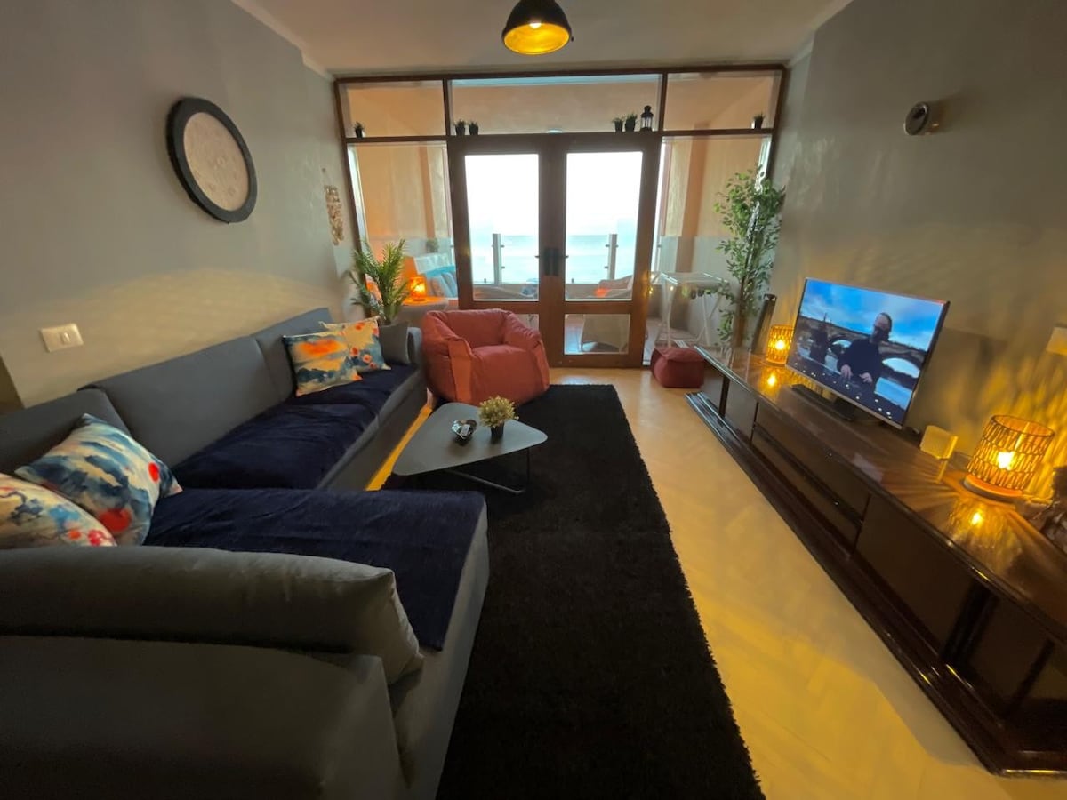 🏖️ Luksuzni stan uz plažu u Gleamu u Aleksandriji | Nezaboravno utočište! ✔️ Panoramski pogled na more: probudite se uz talase i poglede koji oduzimaju dah! ✔️ Elegantan dizajn: klima-uređaj/grijanje u udobnim spavaćim sobama, elegantna dnevna soba, moderna kuhinja . ✔️ Beskrajna zabava: 55" Smart TV sa Netflix i Shahid VIP + brzi Wi-Fi. ✔️ Bezbjednost: non-stop , liftovi. 📍 Glavna lokacija: Koraci od plaže 🌊 – plivajte ili šetajte u sumrak! Najbolji restorani/kafići u Gleamu ☕ U blizini znamenitosti i kupovine u Aleksandriji.ه