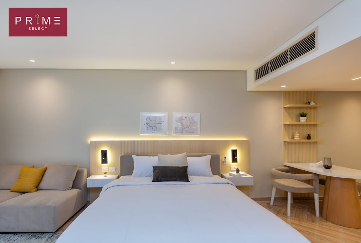 Moderan udoban stan u srcu Kaira Otkrijte ovaj elegantni jednosobni stan koji se nalazi u prestižnom kompleksu Golden Gates, Mokattam. Dizajnirana imajući na umu udobnost i eleganciju, jedinica nudi moderan raspored, otvoreni životni prostor i mnogo prirodnog svjetla - savršeno za samce, parove ili poslovne putnike.