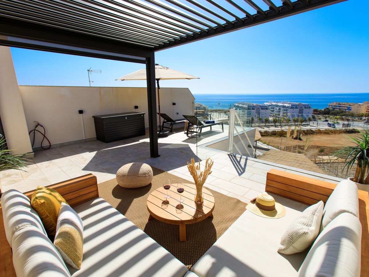 Dobro došli u Penthaus Marinsa Bič, elegantan i luksuzno namješten penthaus na sunčanoj Kosta del Sol. Ova jedinstvena kuća za odmor nudi sve za opuštajući i nezaboravan boravak: veliku privatnu terasu na krovu s pogledom na more, vrhunske sadržaje i savršenu lokaciju samo nekoliko minuta hoda od mora, plaže i šetališta.