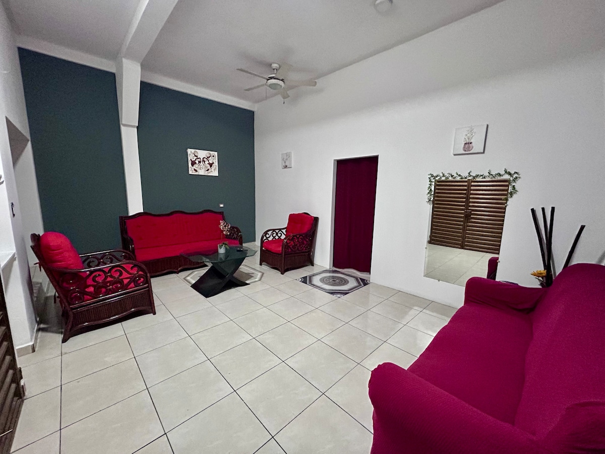 Uživajte u udobnom i prijatnom boravku u ovom bezbednom domu koji se nalazi u ograđenoj zajednici u Metapanu, El Salvador. Prostor ima 2 spavaće sobe, 1 kupatilo, klima-uređaj, brz Wi-Fi, potpuno opremljenu kuhinju, privatnu mašinu za pranje veša i parking. Gosti uživaju u danonoćnom obezbeđenju, kao i u zajedničkom bazenu i parku. Samo 5 minuta od centra grada sa mnogo restorana u blizini, blizu planina, granice Gvatemale, Nacionalnog parka Montekristo, jezera Guija i sjajnih prirodnih mesta za istraživanje.