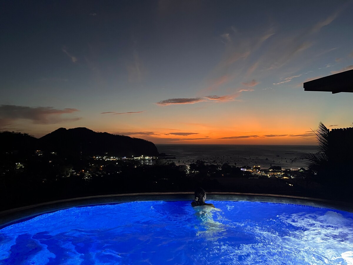 Santa Cruz in San Juan del Sur welcomes you. Wake-up in the morning and enjoy a stuning ocean view over the bay of San Juan del Sur. Take a bath in your private pool surrounded of tropical palms and plants. NEW luxury motorized blinds for full privacy in your own pool house. Just 5 walking minutes from the beach and the City of San Juan del Sur. But Santa Cruz is enough far away from the city to be nestled in your privacy with your private pool. New with ROKU-TV.