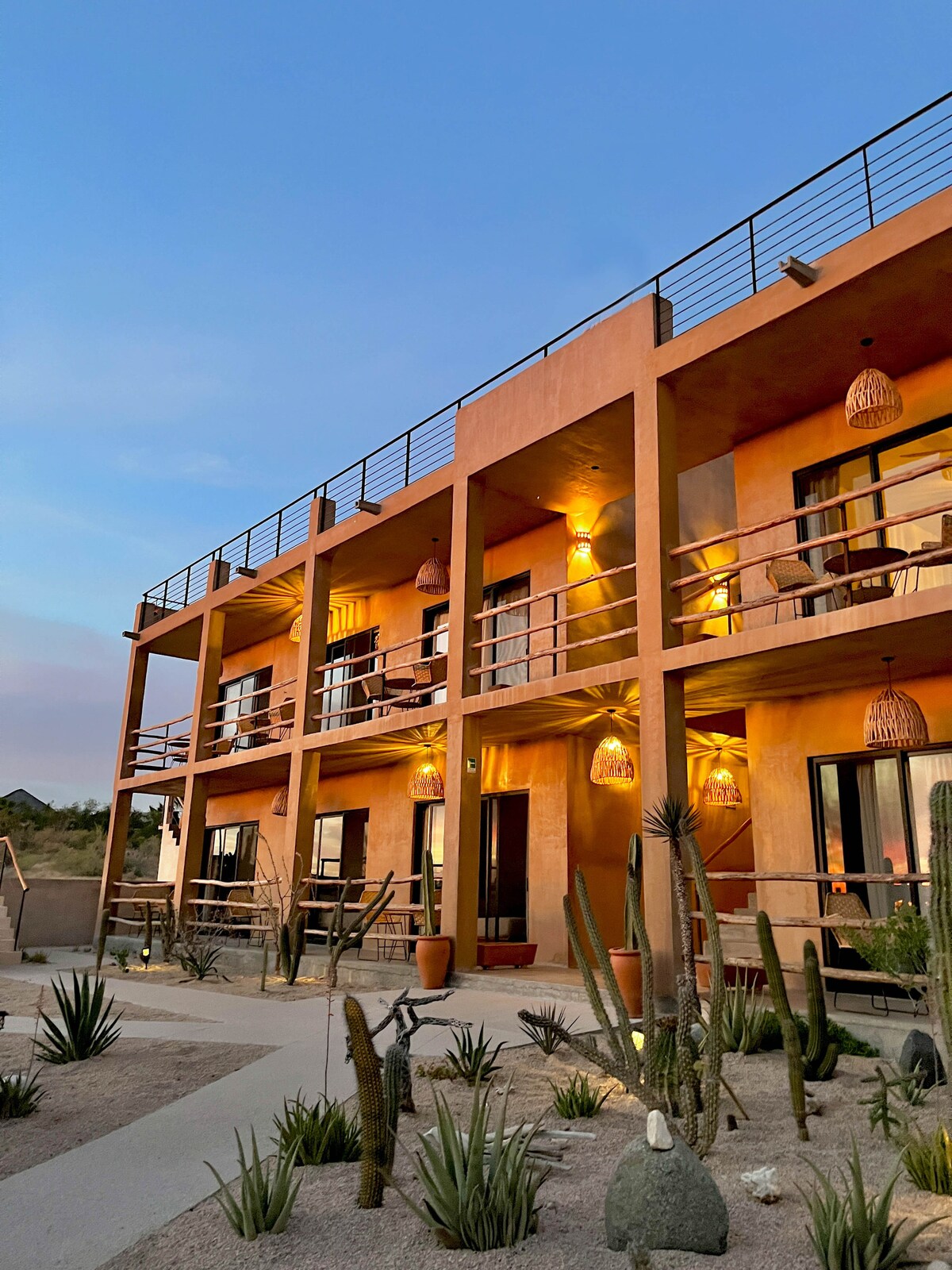 Započnite dan jutarnjom šetnjom do plaže i surfovanjem na čuvenim Cerritosima, gdje se susreću planine, pustinja i okean. U povratku, doručkujte u prijatnom kafiću. Zatim se opustite pored našeg bazena, izležavajte se u visećim ležaljkama ili se opustite u kadi na otvorenom. Uživajte u našem luksuznom smještaju s bračnim krevetom u smještaju Baja Luna Cerritos. Istražite skrovite plaže, pohađajte časove surfovanja, idite na pecanje, pogledajte kitove ili uživajte u lokalnoj kuhinji. Tu smo da vam obezbijedimo bezbjednu i nezaboravnu avanturu.