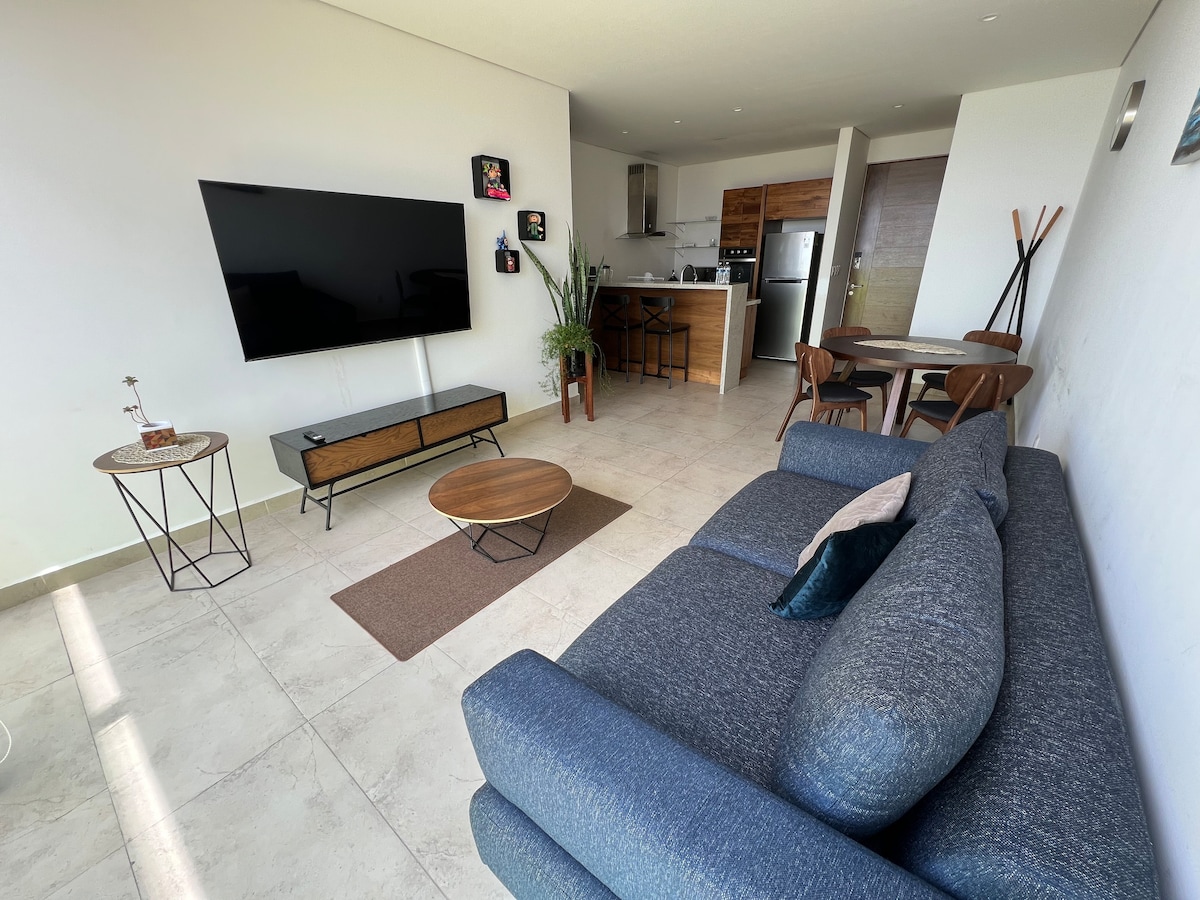 Departamento nuevo y moderno con acabados de lujo, con dos recamaras con cama matrimonial y closet cada una. *La televisión (chica) de la recamara principal (1) sólo cuenta con YouTube y Netflix, la televisión (grande) de la recamara 2 cuenta con VIX, Netflix y YouTube. Cocina y comedor. Es una zona tranquila y segura, ideal para pasar unos días fuera del ruido de la ciudad. El departamento se reserva completo. Para trasladarse hay servicio de transporte público, Uber y taxis.