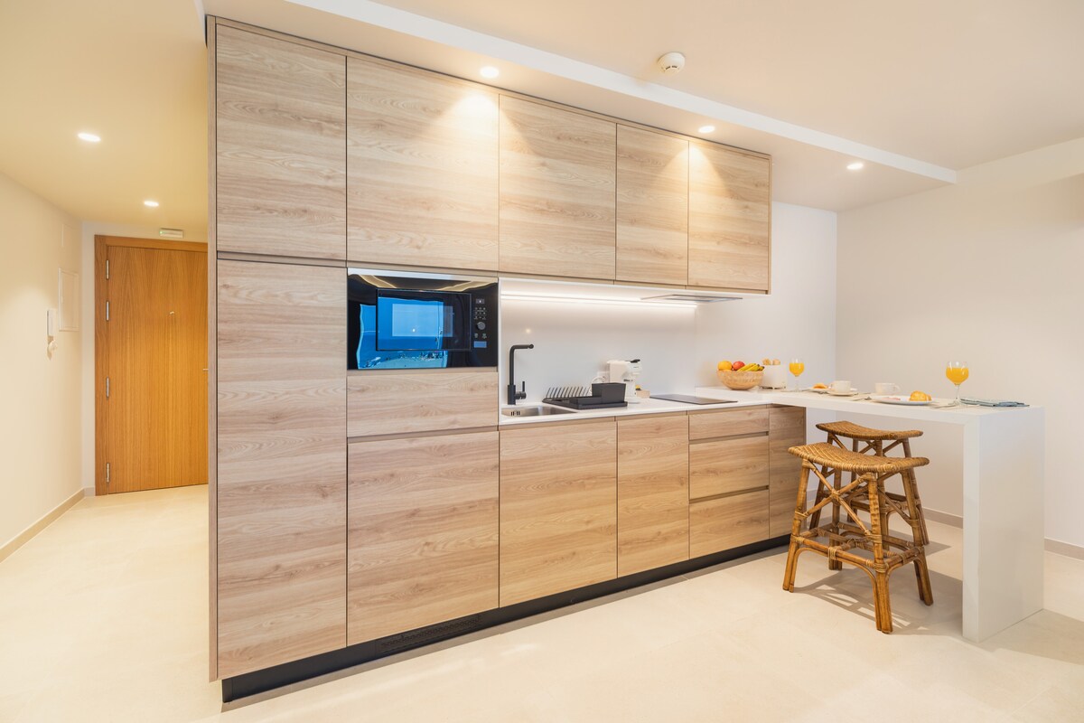Naši apartmani se nalaze u modernom i novom kompleksu od 3 sprata, sa stanovima u potkrovlju i minimalističkim dizajnom. Zgrada ima privatni parking i uslugu pranja veša bez dodatnih troškova. Potpuno opremljena kuhinja, brzi Wi-Fi i klima-uređaj. Nalazi se samo 300 m od plaže i 150 m od Aparthotela La Espadaña , od kojeg mogu da iskoriste fantastične sadržaje kao što su bazen ili restoran.