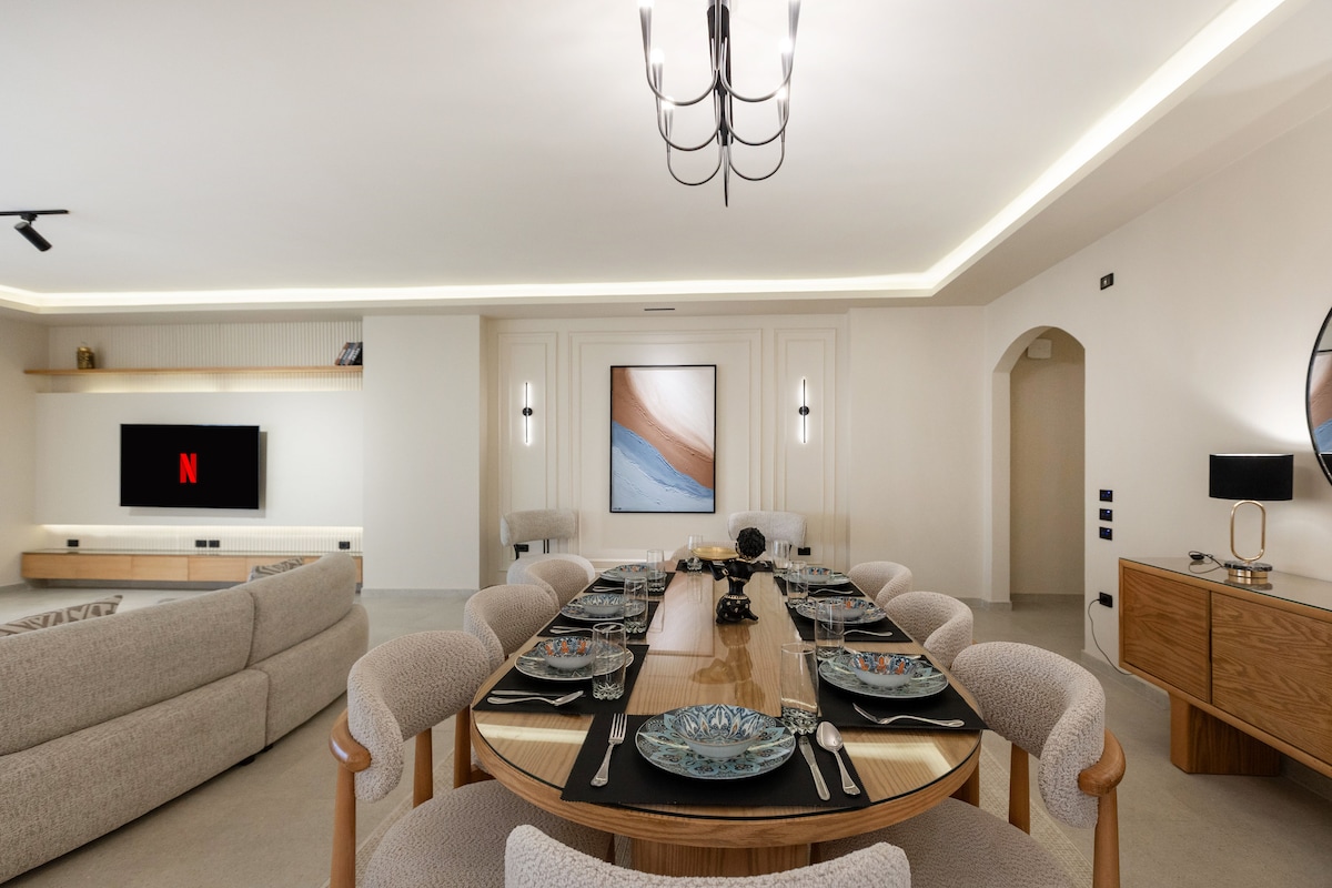 The listed price includes our Standard Package, covering electricity & high-speed Wi-Fi, prepared bed linen (no replacement), towels provided once only, emergency maintenance, a Smart TV with apps installed (no paid subscriptions), and spare key support. A Premium Package is available as a paid upgrade, including housekeeping on demand, premium channels (Netflix, beIN Sports, paid channels), full maintenance, 24/7 premium support, linen & towel replacement, and amenities refill.