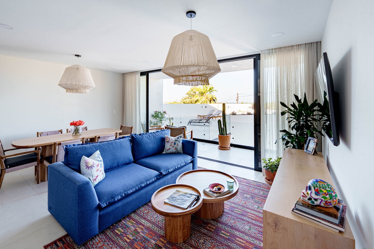 Pobegnite u „Casa Chili“, moderan stan na najvišem spratu u živopisnoj umetničkoj četvrti San Hoze del Kabo. Savršeno za dvoje, ovo utočište nudi potpuno opremljenu kuhinju, parking i zapanjujući zajednički krov sa grejanim infiniti bazenom i pogledom od 360°. Na samo nekoliko koraka od trga Mijares, vrhunskih restorana i galerija. Doživite najbolje od Kaboa sa stilom i udobnošću.
