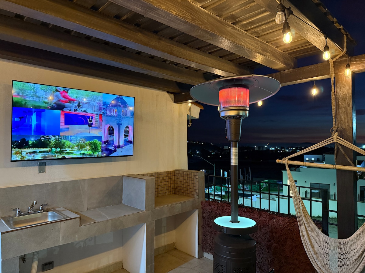 Privatna kuća koja se nalazi unutar GAIA Residencial, sadrži 3 spavaće sobe, 2 kupatila, 2 WC-a, malo unutrašnje dvorište i kompletnu terasu sa prelijepim pogledom na planinsku padinu i okean! Naš dom je posvećen onima koji traže zabavno i opuštajuće vrijeme s prijateljima i porodicom, povoljno se nalazi na 3 minuta vožnje do plaže, 10 minuta vožnje do doline Gvadalupe i 5 minuta vožnje do centra Ensenade. Možete računati na prodavnice, benzinske pumpe, pivare, takose i fine restorane!
