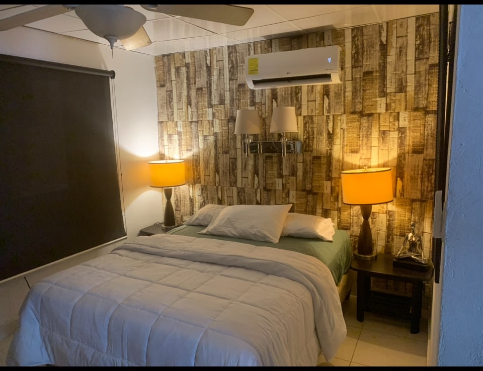Apartamento 2 habitaciones con aire 5 personas. Tiene internet 250 mb cable tv smart , wiffi, agua caliente, cocina, un pequeño comedor, 1 cama queen, 3 camas 3/4 en una segunda además , Terraza con mesa desayunador al aire, asador pequeño, a pocos minutos de Ríos, playas y centros comerciales, supermercados y restaurantes playas Gorgona, Coronado, Vista Mar, Malibu, Playa Teta, Playa Caracol amantes del surf. A 30 minutos sitio turístico Los Cajones de Chame. Cerca de punta