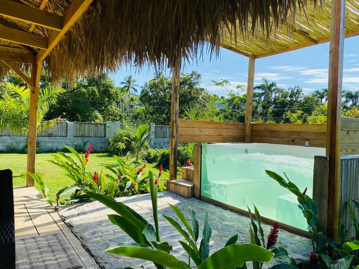Probudite se uz panoramski pogled na okean iznad plaže Koson 🌊 Privatna, mirna vila okružena bujnom tropskom prirodom. Opustite se u zadivljujućem đakuziju od 4,5 m, uživajte u nezaboravnim zalascima sunca i ponovo se zbližite u zaista romantičnom karipskom okruženju. Samo nekoliko minuta od plaže Koson i naselja Las Terrenas. 💻 Brzi Wi-Fi 🌿 Potpuna privatnost ✨ Savršeno za parove, pogodno za LGBTQ+ osobe i za intimni odmor u prirodi. Slavite nešto posebno? Možemo da organizujemo romantične aranžmane sa cvećem, šampanjcem i još mnogo toga.