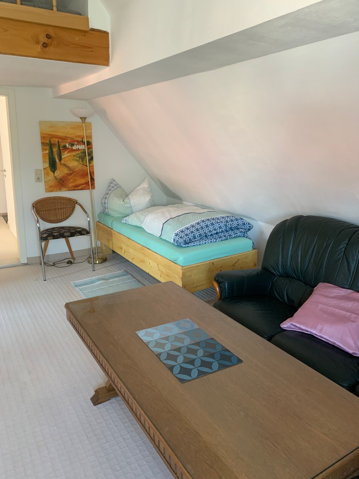Here you will find a cozy room with private bathroom and a beautiful sunset view. Enjoy the tranquility in the Thuringian Forest, allow yourself time to be active or creative. Try Yoga on the terrace as a self practise or train your boulder skills Winter season in Oberhof: our accommodation is a cheap, not too far away option for sports enthusiasts! We, Jasmin & Sascha, are happy to host you whether you travel for holiday or buisness!