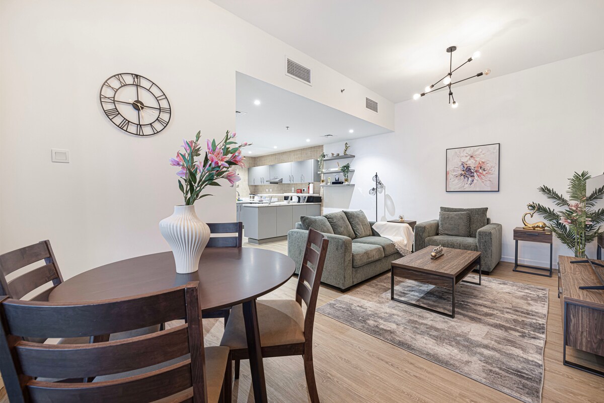 Topao, pažljivo uređen dom u Marini sa pogledom na more – savršen za opuštene boravke, jutarnju kafu pored prozora i lagane šetnje plažom. Smešten u dubajskoj marini, ovaj jednosobni apartman ima neverovatan pogled na dubajsku luku i ostrvo Bluvoters. Zgrada se nalazi u gradu u kojem ima mnogo restorana i namirnica. Možete i da kuvate jer kuća ima potpuno opremljenu bijelu kuhinju. Ima pametni TV, Wi-Fi, mašinu za pranje veša, mašinu za pranje sudova. Ovaj smještaj ima mogućnost samostalne prijave.
