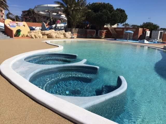 Ce camping de haute qualité est idéalement situé (plage, étang, commerces, centre de thalasso) comporte boulangerie, supérette, restaurants, coiffeur,docteur.Vue sur l’étang avec ses flamants roses et sur le mont Canigou,à 30 mn de l’Espagne,10 mn de la gare,de l’aéroport de Perpignan.De nombreuses activités, le club enfants 1-15 ans .Il a son parc aquatique piscine chauffée couverte, toboggans pistes de glisse,pataugeoire,SPA, splash, terrains pétanque ping-pong salle de sport aires de jeux.