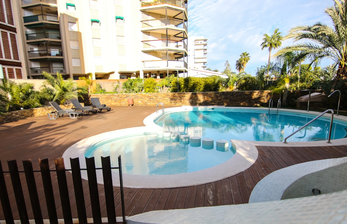 Potpuno opremljen stan, nedavno renoviran i sa potpuno novim nameštajem. Nalazi se na dva minuta hoda od plaže. Idealno za parove ili malu porodicu (2 do 4 osobe) koji žele udoban i privatan stan, sa bazenom, igralištem i privatnim parkingom. Na raspolaganju su bračni krevet i udoban kauč na razvlačenje. Apartman ima veliki balkon sa pogledom na more, bazen i planine. Stambeni prostor je miran i lep.