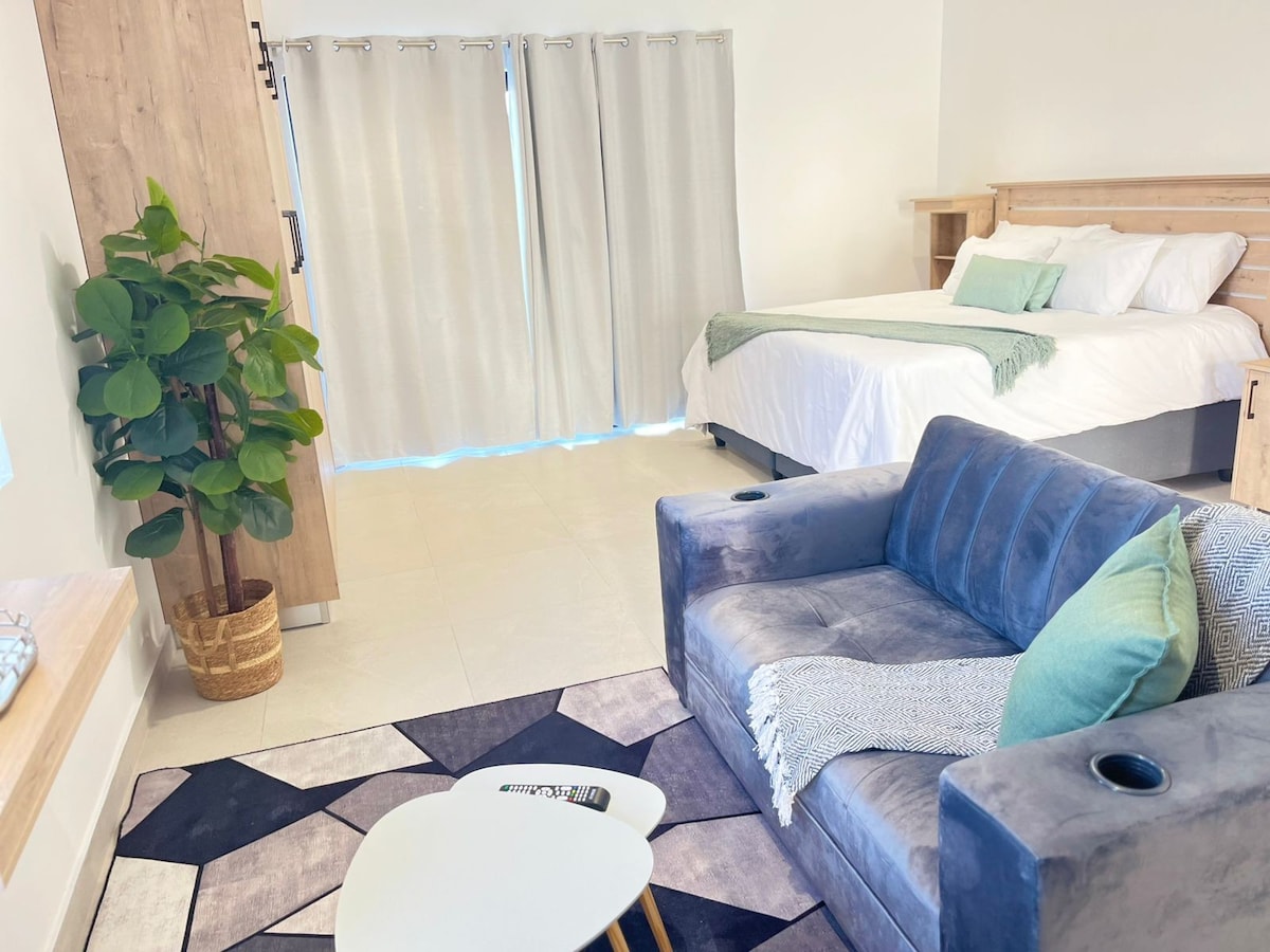 Privatni jednosobni klimatizovani stan sa baštom. Savršeno skrovište sa svim osnovnim uređajima kao što su Weber Braai, Nespresso aparat za kafu, friteza i mašina za pranje veša. Udobna posteljina. Nalazi se u mirnom predgrađu samo 2,5 km od tržnog centra Hemingvej i restorana i supermarketa Abotsford Vilidž. U sklopu objekta je garaža za automobil srednje veličine. Naši gosti se vraćaju iznova i iznova.
