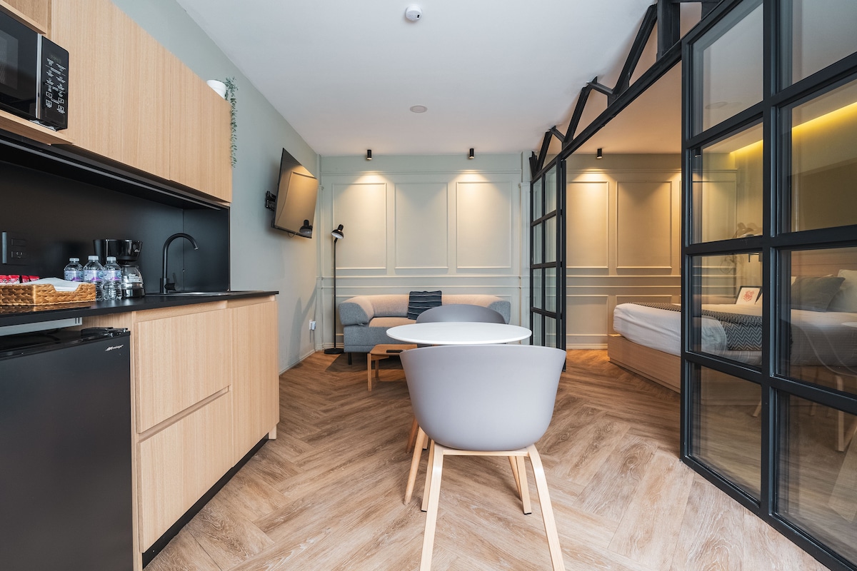 A unos pasos de Av. Paseo de la Reforma y detrás de la embajada de Estados Unidos, se encuentra un edificio con 12 suites recientemente remodeladas. La suite cuenta con cama Queen Size y sofá cama, una pequeña cocina equipada con todo lo que necesitas, internet de alta velocidad para poder trabajar vía remota y servicios de streaming. Cerca de una zona de muchos restaurantes, a unos pasos del Ángel de la Independencia y cerca del bosque de Chapultepec.