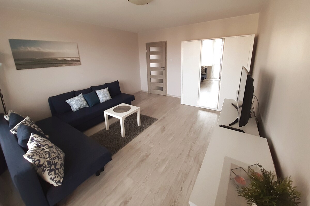 A warm, comfortable 56 m² apartment in Gdynia on Kamienna Góra, a few minutes from the boulevard. Good conditions for rest and work, fast internet. Two separate rooms, a double bed 160 cm and a wide sofa in the second room, bed linen and towels provided. A well-equipped kitchen. Second floor, but there is also an elevator. Free gated residential parking subject to availability, usually no problem. Guests receive a pilot to the gate from the host together with the keys. Central Park is opposite.