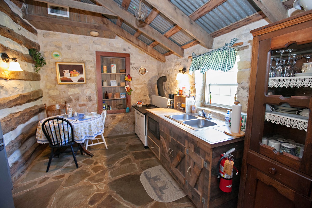 Dobro došli u Twisted Oak. Nećete poželjeti da napustite ovaj šarmantni, jedinstveni, mirni objekat u Teksasu. Uživajte u tamnom zvjezdanom noćnom nebu dok uživate u privatnoj hidromasažnoj kadi! JELEN, ćurka i autentični teksaški Longhorns slobodno lutaju otvorenim pejzažima. Dođite i pomazite nosove konja! Kompletan sa udobnim krevetom, potpuno opremljenom čajnom kuhinjom i velikim kupatilom. Vrlo slikovita vožnja do FBG-a. Ova rustična, profinjena brvnara pruža vam uvid u hospitaliju u Hil Kantriju. Lokacija za odmor 💕 Opustite se i posmatrajte JELENA!