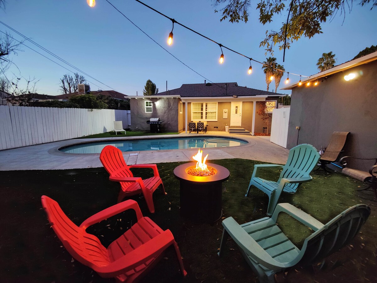 Opustite se pored bazena ili u hidromasažnoj kadi okruženoj bujnim zelenilom ispred ove prostrane, renovirane gostinjske kuće smeštene u predivnom, privatnom okruženju. Posebnosti enterijera uključuju led TV i sistem surround zvuka, čajnu kuhinju i dovoljno prostora za odlaganje. (Dostupnost bazena je od 1. maja do 30. septembra (bez izuzetaka), ALI hidromasažna kada JE dostupna tokom cele godine.) Obezbeđujemo i aparat za kafu Keurig sa K-šoljicama, kao i besplatno vino i flaširanu vodu. Postoji zidni led TV širokog ekrana sa surround sistemom sa YouTubeTV-om i Netflix-om. Izvan kuće na terasi se nalazi mašina za pranje i sušenje veša za vašu udobnost, a pegla i daska za peglanje nalaze se u ormariću ispod stepenica. Bazen i hidromasažna kada: Bazen je na raspolaganju/grejanje samo od 1. maja do 30. septembra. Nema izuzetaka. Masažna kada je dostupna na zahtev. Kuća za goste je samostojeća, privatna i odvojena anketom, sjenicom i velikim dvorištem. Imate besplatan pristup imanju i bazenu. Srećni smo što vam boravak čini što prijatnijim. Jedan od nas radi u kući i može biti dostupan ako vam zatreba pomoć. Istražite Los Anđeles - krenite u kratku šetnju do beskrajnih restorana i mesta za kupovinu na bulevaru Ventura. To je kratka vožnja do fakulteta, tematskih parkova, turističkih atrakcija i, naravno, Holivuda. Možete da prošetate do skoro svega što vam je potrebno da biste ušli u autobus koji je udaljen samo jednu ulicu. *Zabave, događaji ili velika okupljanja nisu dozvoljeni. *Gosti moraju da imaju više od 21 godinu, osim u slučaju porodica koje putuju sa decom. *Bazen je na raspolaganju/grejanje je od 1. maja do 30. septembra. Nema izuzetaka. Masažna kada je dostupna na zahtev. *Bazen i stepenice bez ograde. Deca moraju biti pod nadzorom u svakom trenutku. Gost prihvata svu odgovornost i smatra da je vlasnik bezopasan.