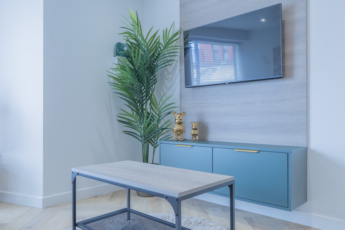 Unwind in our stylish central Ecclesall road two bedroom apartment. The apartment has everything you need to unwind and relax during your stay. With the lounge offering at 75" wall mounted 4k TV on a modern slatwall backdrop, dinning table with overhead mood lighting. Both bedrooms offer king size beds with Simba memory form mattresses. The kitchen has integrated appliances with coffee machine with complimentary pods. The bathroom has a large walk in shower with contemporary matt black features