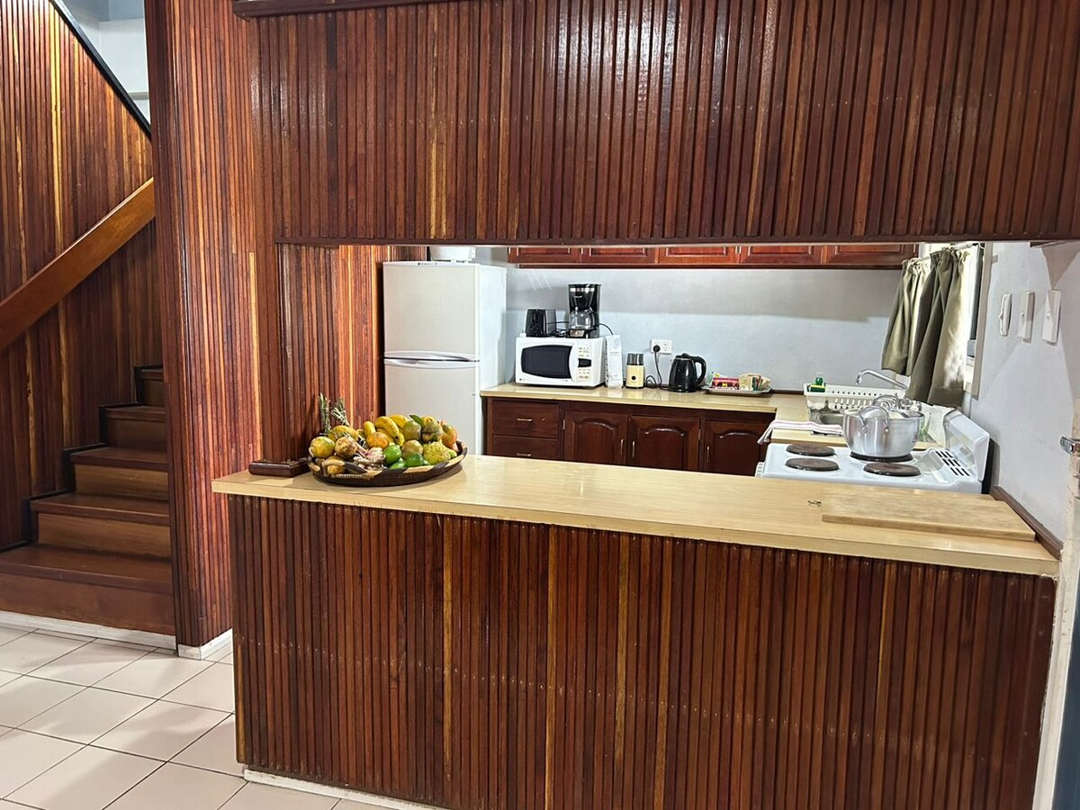 Smješten 10 minuta od grada Mount Hagen i 15 minuta od aerodroma Kagamuga, naš dom pored reke okružen je prelepim baštama u bezbednom , mirnom i spokojnom okruženju. 3 spavaće sobe su u zakupu. U prizemlju se nalazi kuhinja, trpezarija, salon, veš sa mašinom za pranje veša, kupatilo, WC šolja i 1 spavaća soba. Na spratu se nalazi drugi prostor za sedenje sa balkonom, dve spavaće sobe, kupatilom i WC-om sa tušem i kupatilom u punoj veličini. Prevoz je obezbeđen do i od grada/aerodroma