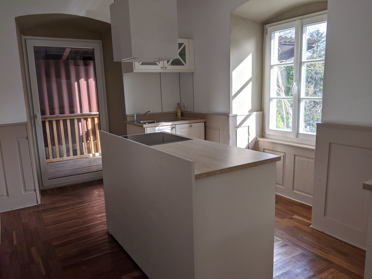 Dies ist die Erdgeschosswohnung (EG) in unserem schön gelegenen Haus in Tengen. Der Bau aus dem Jahr 1820 ist als erhaltenswertes Gebäude im Ensemble der Altstadt eingestuft. Die Bauweise in massivem Bruchstein gibt dem Haus eine wunderbare Atmosphäre; Dank der Lage am Stadtgraben hat man einen offenen Blick nach Süden. Weitere Wohnung im Obergeschoss: dem Erdgeschoss vermieten wir seit Kurzem auch die separate Wohnung im 1. Stock über Airbnb.