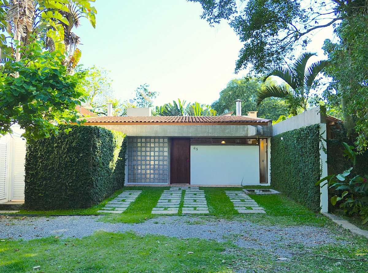 Sou um artista plástico ítalo-suíço e convido você a conhecer o meu lindo refúgio e fonte de inspiração. A casa fica no meio do mato, na beira do rio e a 5 minutos a pé (200m) do mar. A casa é charmosa, porém rústica; é para amantes da natureza com espírito esportivo. Lugar calmo e ideal para quem quer ler, escrever ou relaxar. Tem supermercados e restaurantes bem perto; deixe o carro e faça tudo a pé. Alugo por um mínimo de 2 dias e durante feriados, por um mínimo de 3 dias.