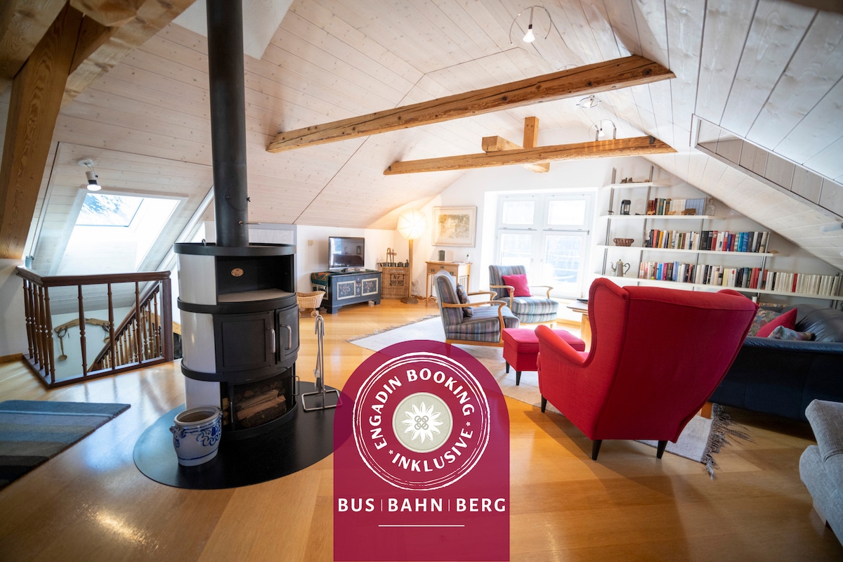 Udoban stan u potkrovlju sa 2,5 spavaće sobe u istorijskoj četvrti Chasa Veglia. S ljubavlju i visokim kvalitetom razvijen sa drvenim podovima i kaminom – ugrađen u stare konstrukcije staje Engadine. Lokacija je savršena za ljubitelje kulture i prirode: pješačke staze, staza za skijaško trčanje, bazen i nacionalni park na pragu. Nema Wi-Fi mreže ni TV-a, ali ima knjiga i igara. Zajednička bašta za zajedničku upotrebu. Do šopinga i željezničke stanice možete doći za 5 do 10 minuta hoda.