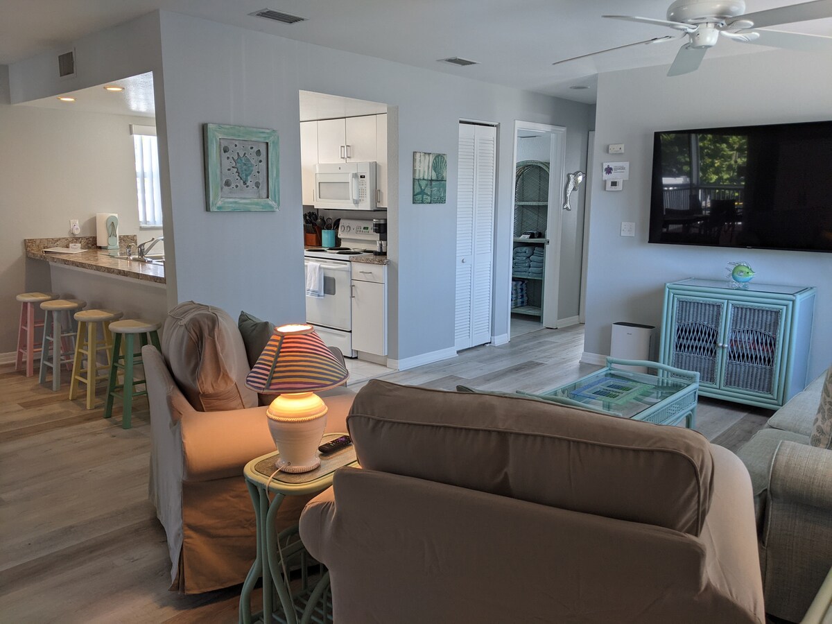 POTPUNO AŽURIRANO NAKON OLUJE. Dobro došli u Ocean Breeze Haven, vaš savršeni odmor na prelijepoj zapadnoj obali Floride. Ovaj šarmantni smještaj s jednom spavaćom sobom i jednim kupatilom nudi idealan spoj udobnosti i šarma obale. Smješteni na Manasota Key-u, uživaćete u jutarnjoj kafi na privatnom balkonu sa zadivljujućim okeanskim povjetarcem dok je so u vazduhu. Naći ćete udoban dnevni boravak, potpuno opremljenu kuhinju i mirnu spavaću sobu sa plišanom posteljinom. Samo 5 minuta hoda do pješčanih obala!