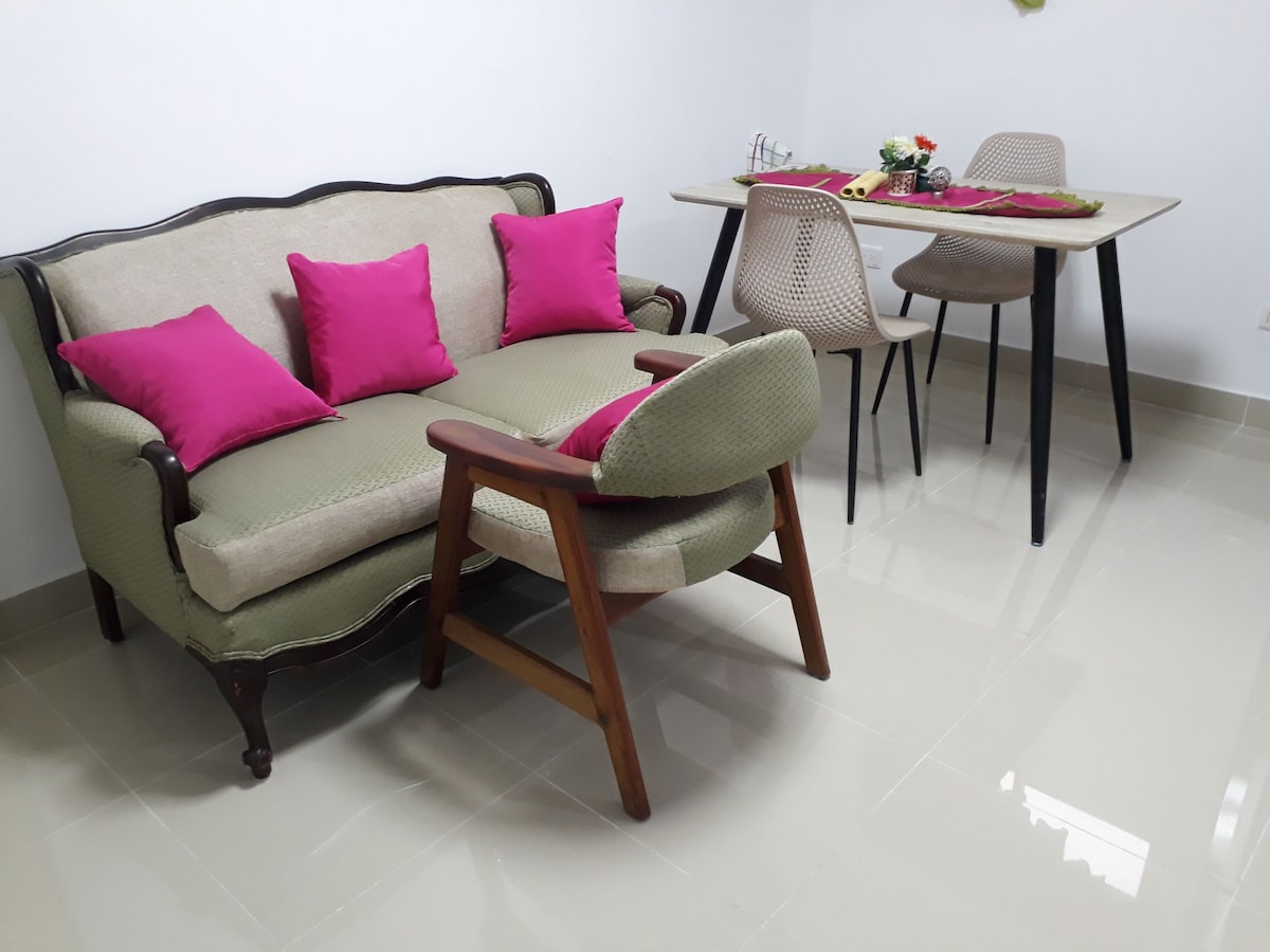 Prelijep i moderan stan koji se nalazi u centru grada Santo Dominga, potpuno opremljen i namješten, klima-uređaj, Smart TV plus 200 kanala, super brz Wi-Fi, privatni natkriveni parking, zajednički prostor sa teretanom, terasa sa stolicama i roštiljem, prelijep pogled i sve što vam je potrebno u gradu na korak od vas. Osjećajte se kao kod kuće u ovom šarmantnom i udobnom stanu. Odličan je za opuštajuća putovanja ili poslovna putovanja.